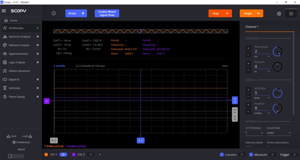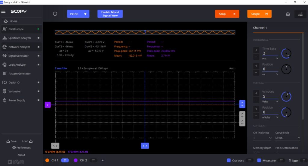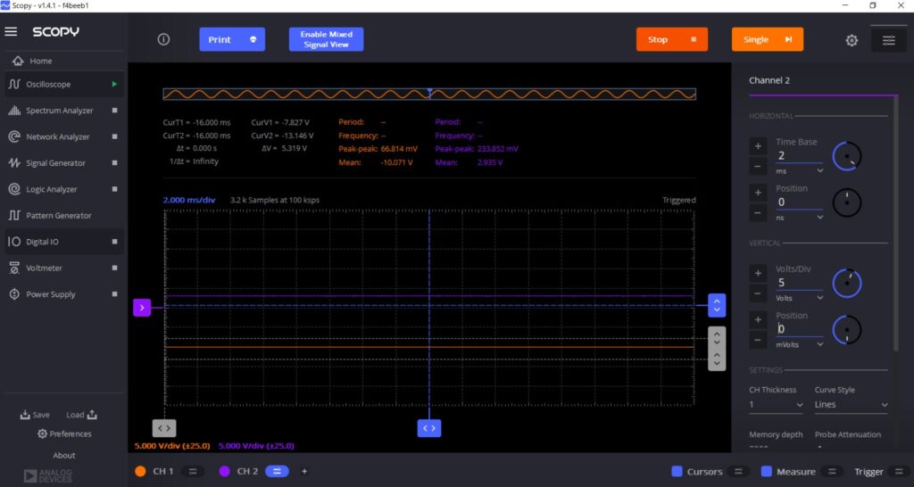 直流電源の出力電圧を0V(0.0A)、5V(0.1A)、10V(0.2A)、-5V(-0.1A)、-10V(-0.2A)にした時の電圧波形を下記に示します。