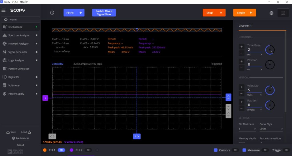 出力電圧5V(0.1A)時 測定結果:電流モジュール出力電圧2.6V