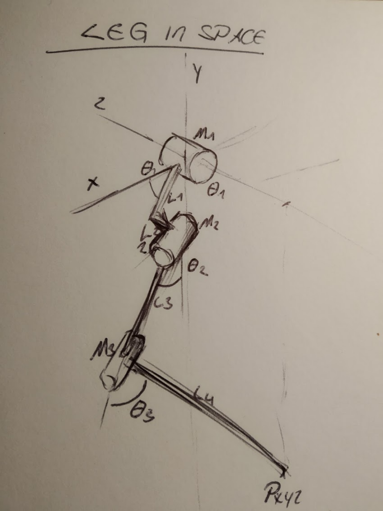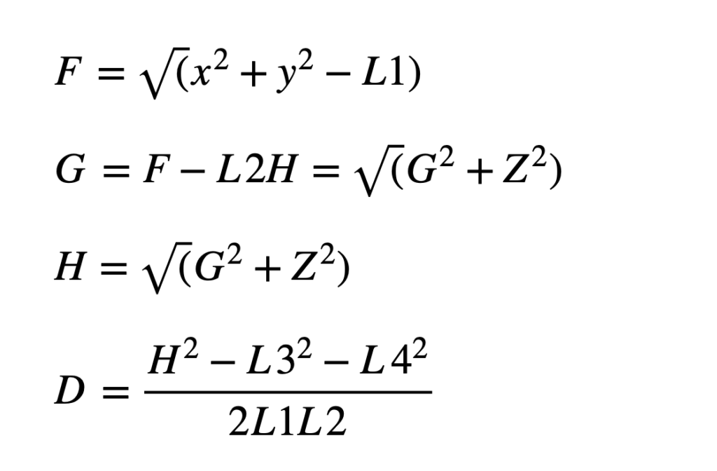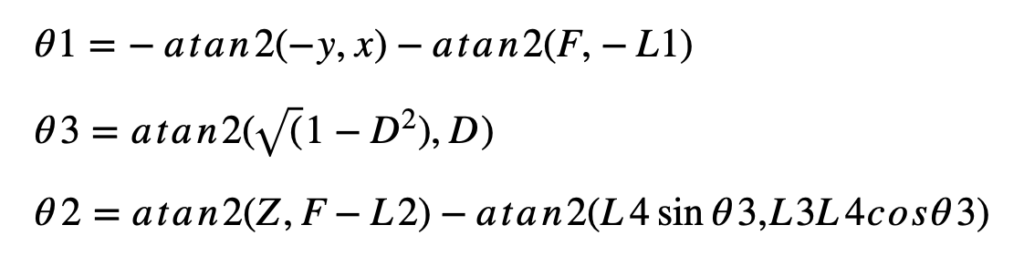 というのも巷にある四脚歩行ロボの逆運動学解説サイトにはZ軸方向のL2が考慮されていないものが多いのですが、これに関しては考慮した上で解説してくれています。