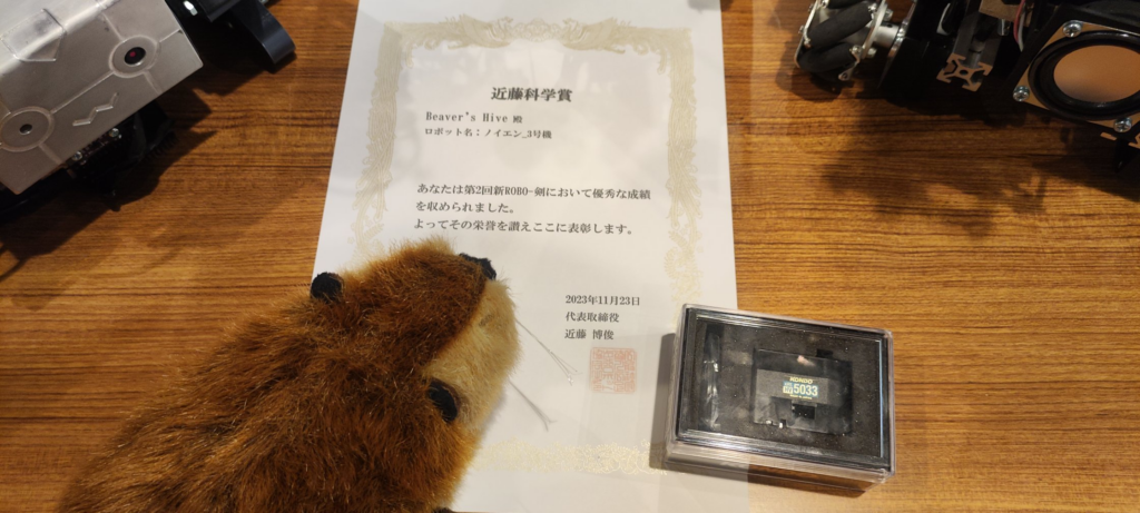 副賞としてKONDOのマイクロサ➖ボをいただいたので、今後のロボット制作に活用させていただきます。