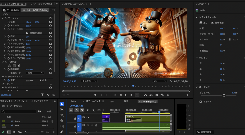 元々はSoraだけで生成しようと思っていたのですが、画像から動画を生成(I2V)の精度が劇的に悪かったため、HailuoAIを使用しています。