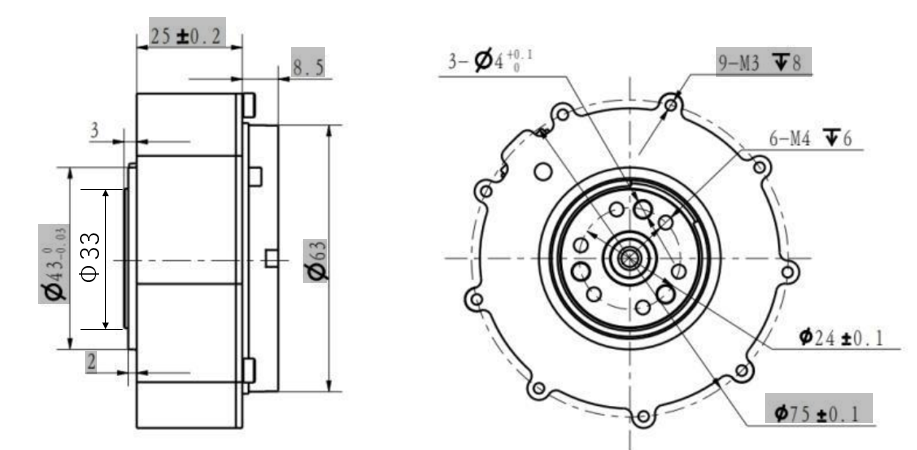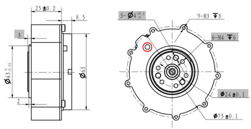 こちらはΦ43のインロー部で位置決めしつつ9カ所のM3で固定します。