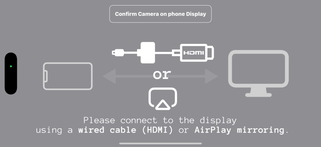 すると、ディスプレイには前後カメラの映像が、iPhoneの画面には以下の画面が表示されます。