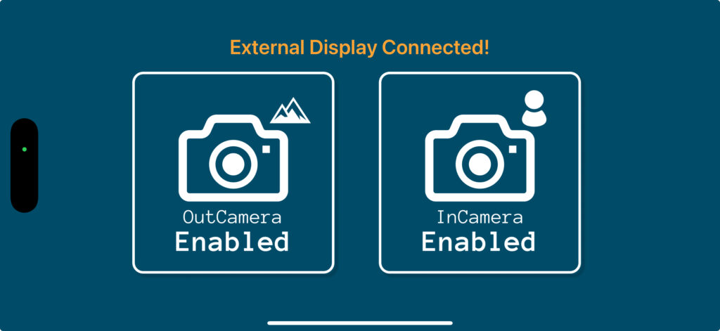 このアプリを使うことで、前後のカメラの映像を外部のディスプレイに出力することができます。