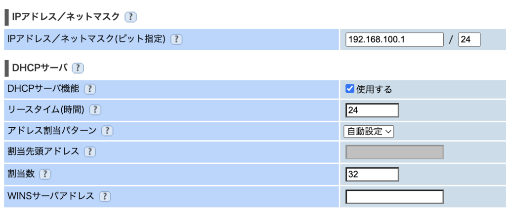 これを解決するために、WR9500Nの管理画面から、DHCP割り当てホストを192.168.100.1~に指定します。